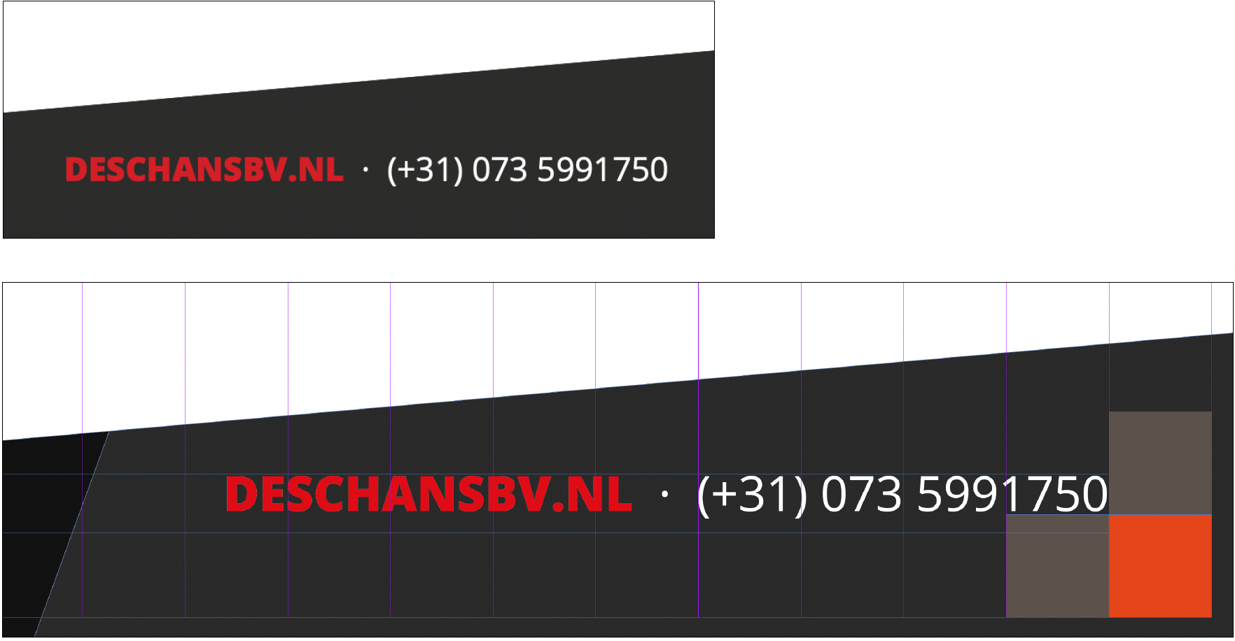 Daarnaast wordt het telefoonnummer (in sommige gevallen kan hier ook het adres worden geschreven) in het font “Open Sans Light” geschreven in het wit.